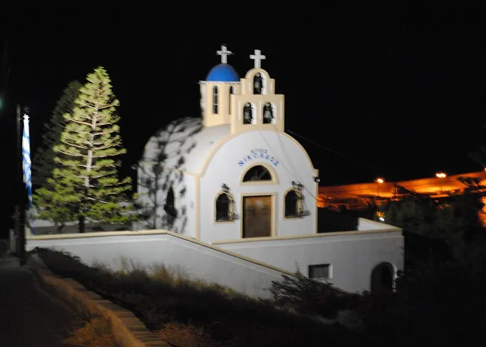 3-gwiazdkowy hotel położony jest około 10 km od lotniska Santoryn International i tylko 2 km od takich miejsc kulturalnych jak Muzeum Megaro Gyzi. Zabytki historyczne obejmują Skała Skaros, który znajdują się tylko 3 km od tego obiektu noclegowego. Plaża Monolithos leży tylko 2 km od obiektu.